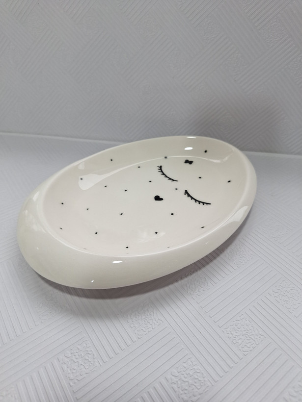 بشقاب سرو تخم مرغی مدل مژه خالدار جنس سرامیک