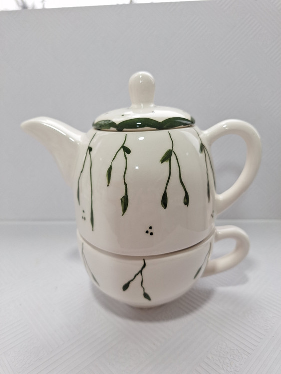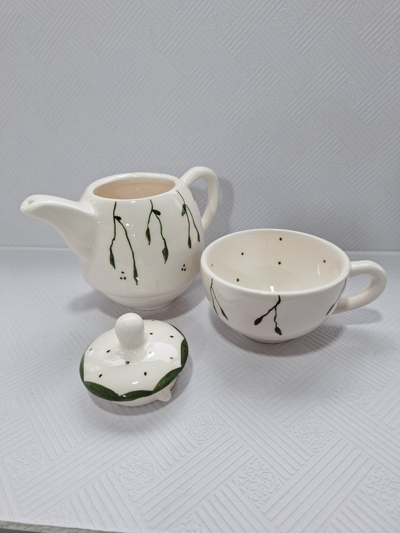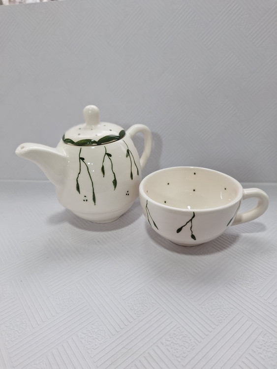 چای خوری تک نفره مدل برگ سبز جنس سرامیک