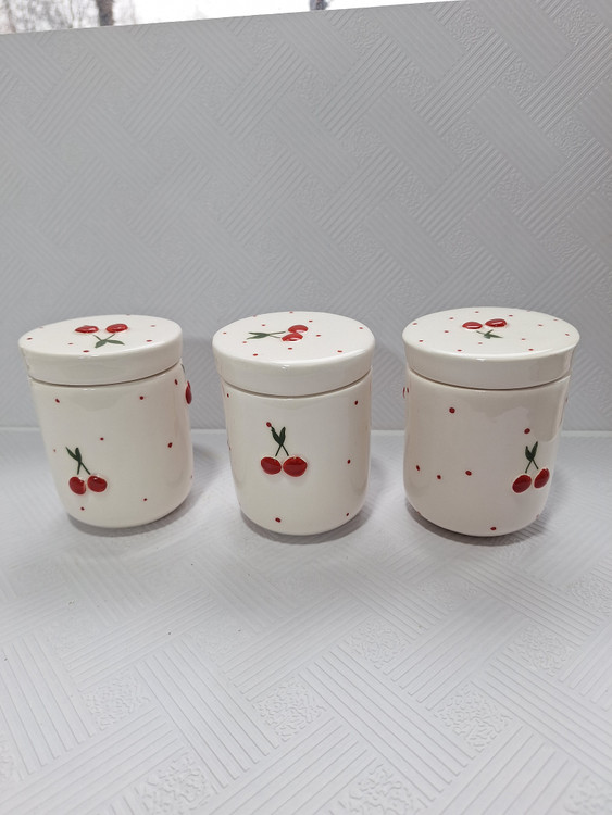 اندازه: قطر دهانه ۸ سانت ، ارتفاع با درب ۱۰.۵ سانت