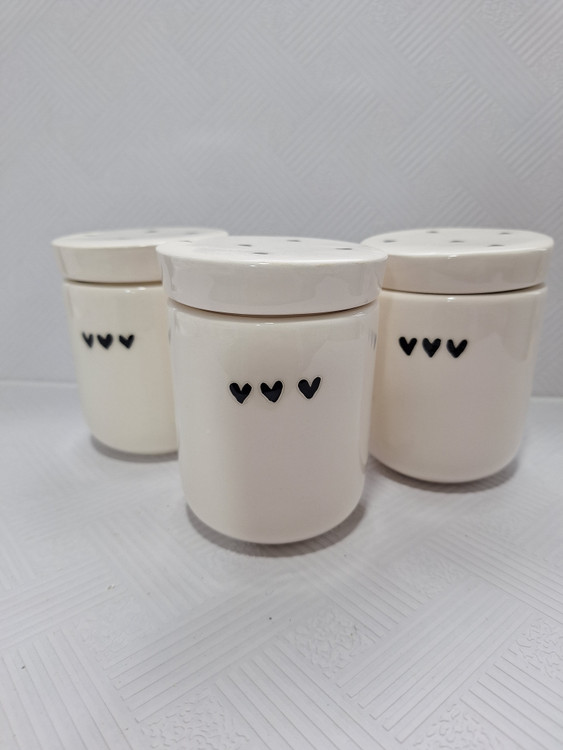 اندازه: قطر دهانه ۸ سانت ، ارتفاع با درب ۱۰.۵ سانت