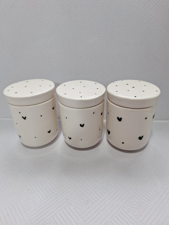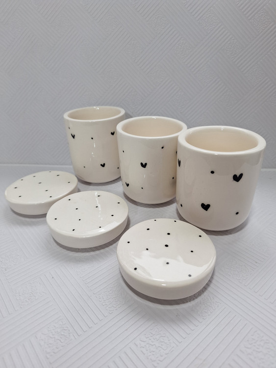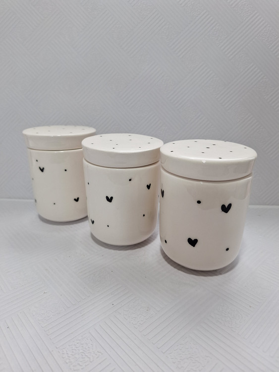 اندازه: قطر دهانه ۸ سانت ، ارتفاع با درب ۱۰.۵ سانت