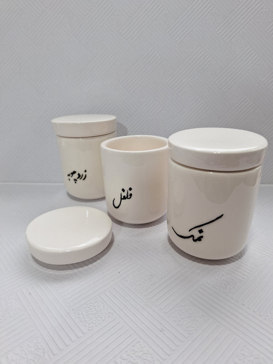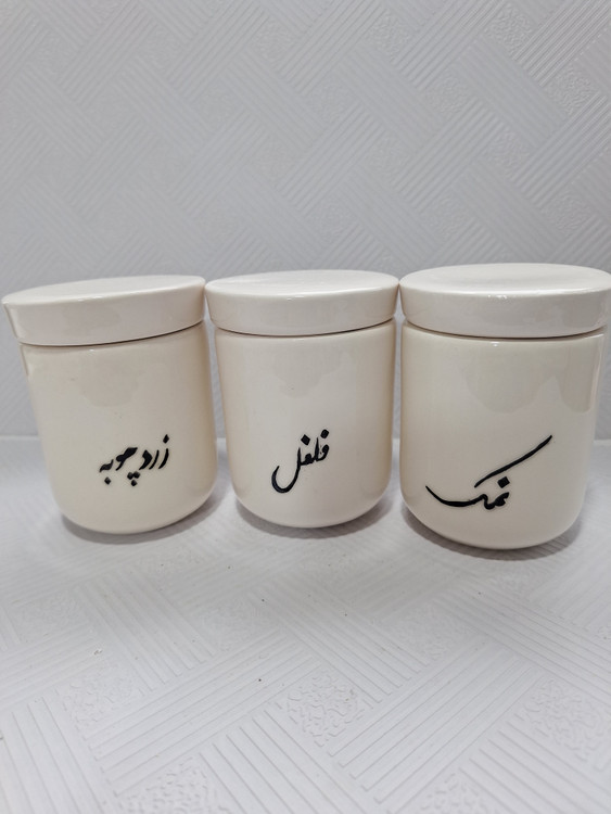 اندازه: قطر دهانه ۸ سانت ، ارتفاع با درب ۱۰.۵ سانت