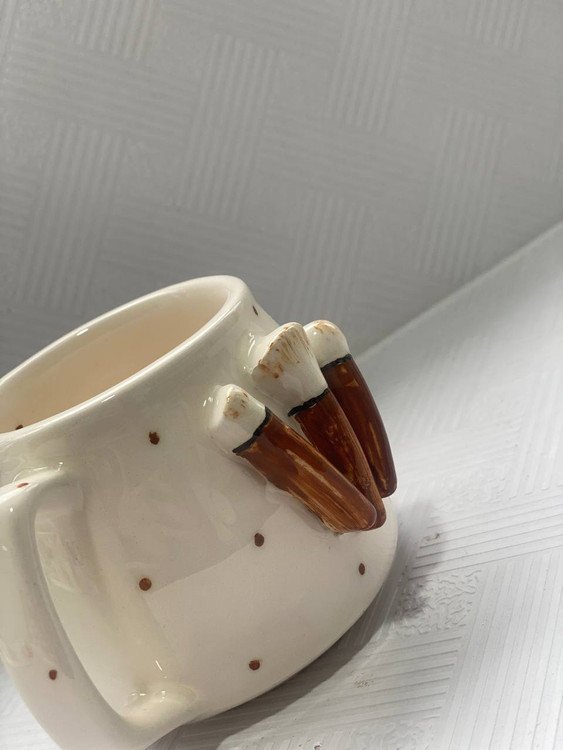 اندازه: قطر دهانه ۸ سانت ، ارتفاع ۸ سانت ، طول با دسته ۱۰.۵ سانت
