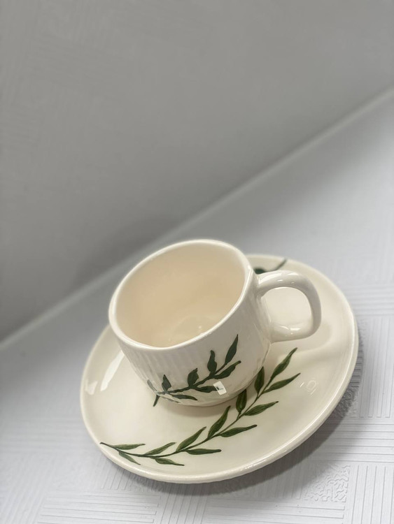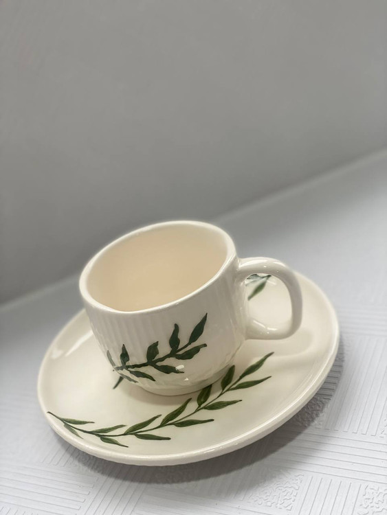 اندازه فنجان: قطر دهانه ۸ سانت ، ارتفاع ۶.۵ سانت ، طول با دسته ۱۰.۵ سانت