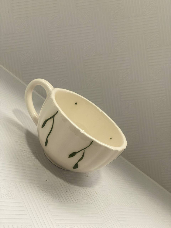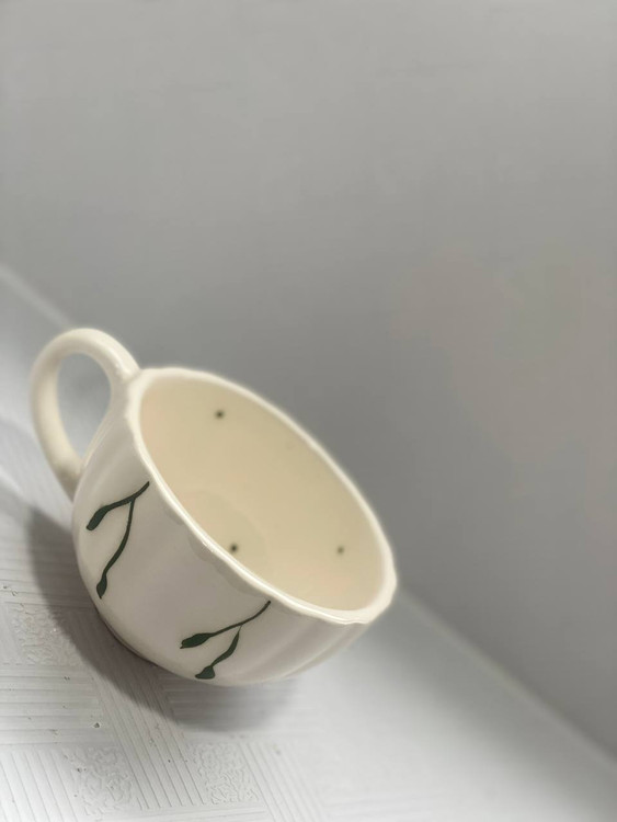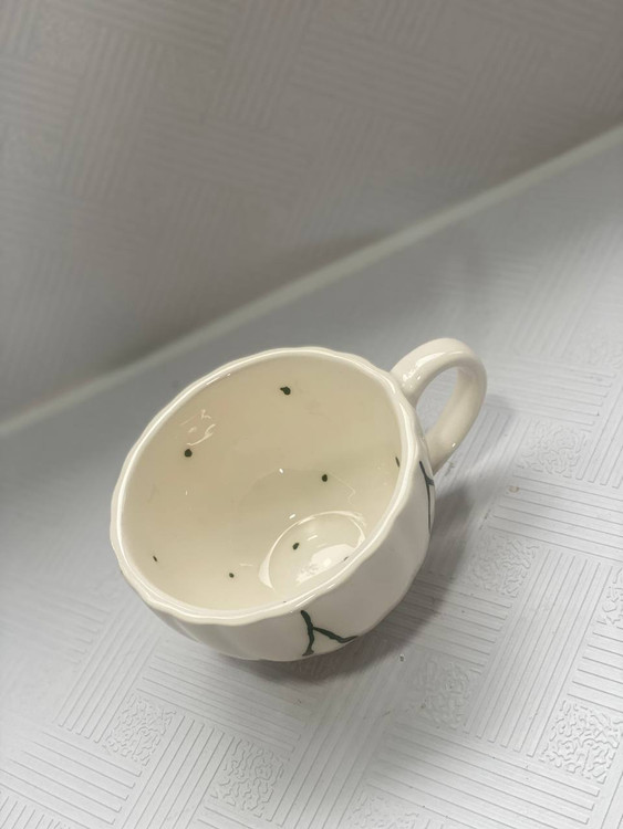 اندازه فنجان: قطر دهانه ۱۰ سانت ، ارتفاع ۶ سانت ، طول با دسته ۱۴ سانت