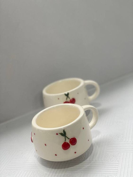 اندازه فنجان: قطر دهانه ۷.۵ سانت ، ارتفاع ۶ سانت ، طول با دسته ۱۰ سانت