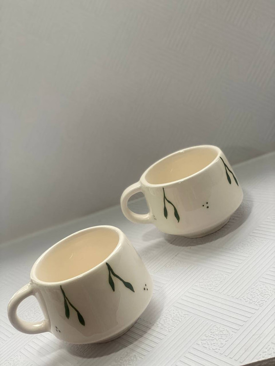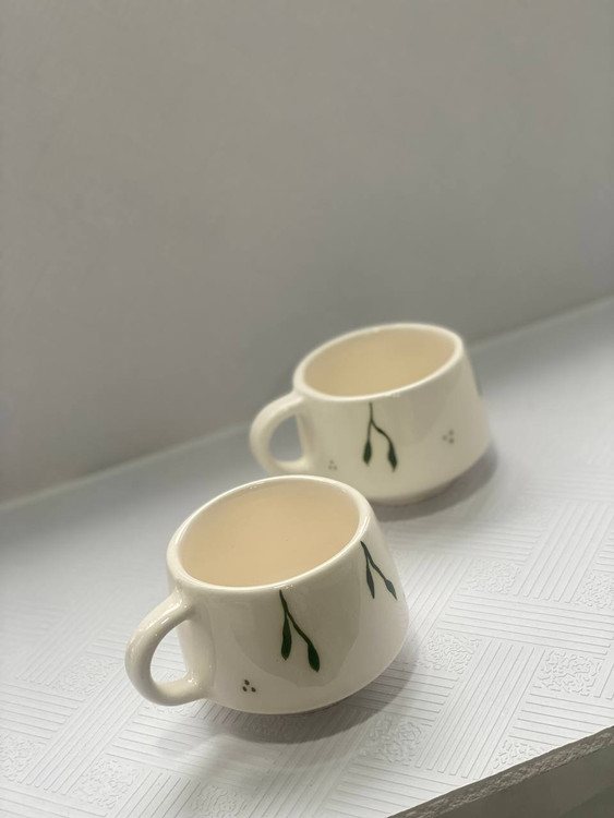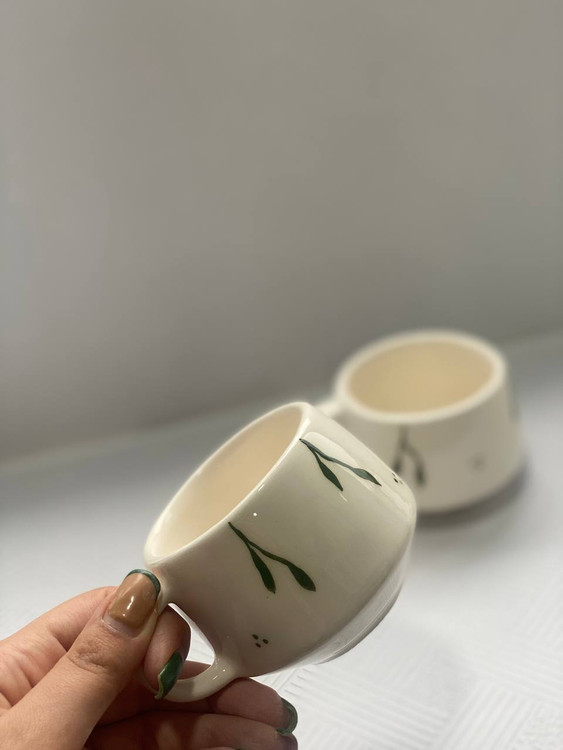 اندازه فنجان: قطر دهانه ۷.۵ سانت ، ارتفاع ۶ سانت ، طول با دسته ۱۰ سانت