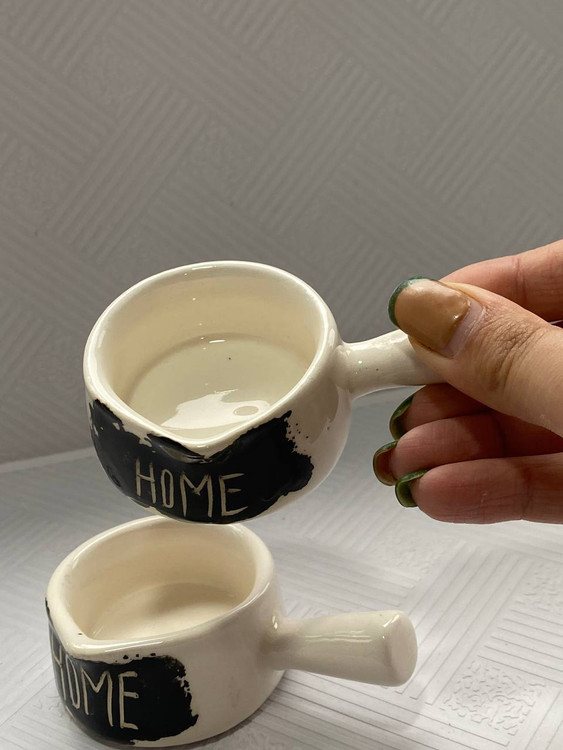 اندازه: قطر دهانه ۶ سانت ، ارتفاع ۳.۵ سانت ، طول با دسته ۹.۵ سانت