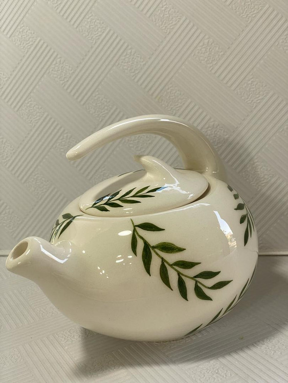 قوری بزرگ دسته بالا مدل برگ سبز جنس سرامیک