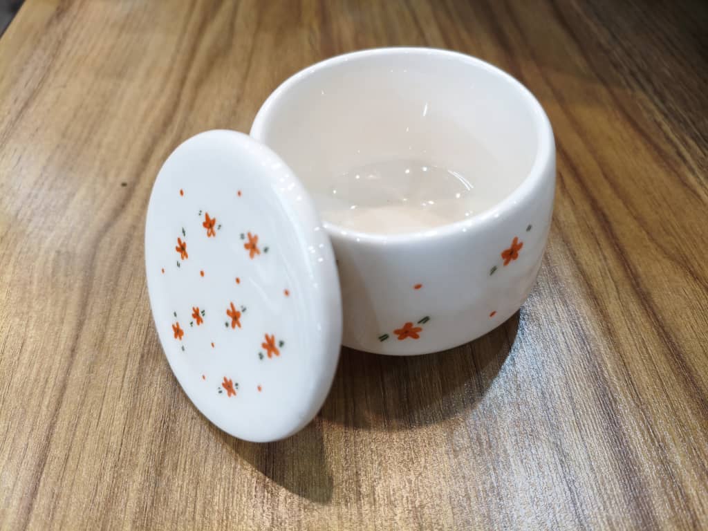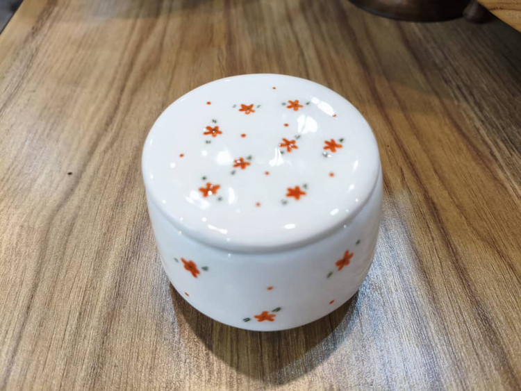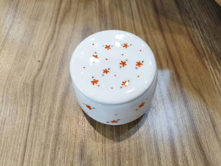 ابعاد: قطر دهانه ۸ سانتی متر ، ارتفاع با درب ۶ سانتی متر