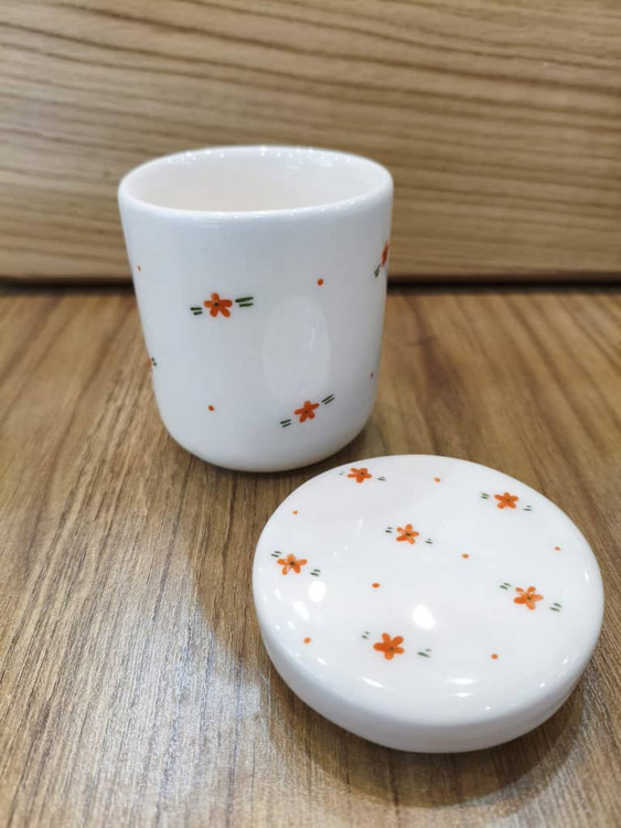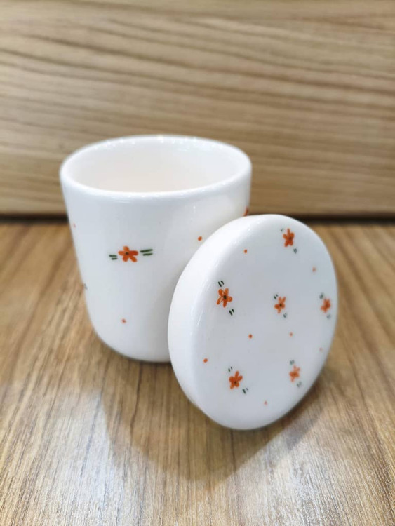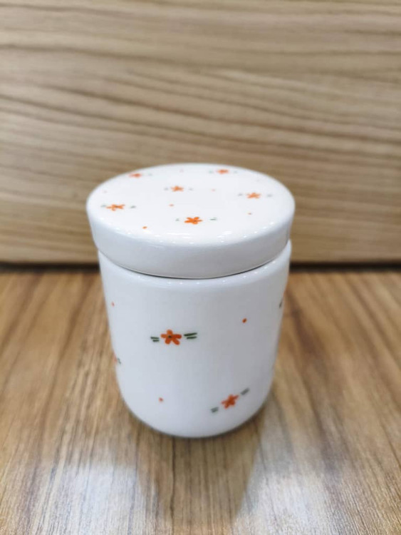 ابعاد: قطر دهانه ۸ سانت ، ارتفاع با درب ۱۰.۵ سانت