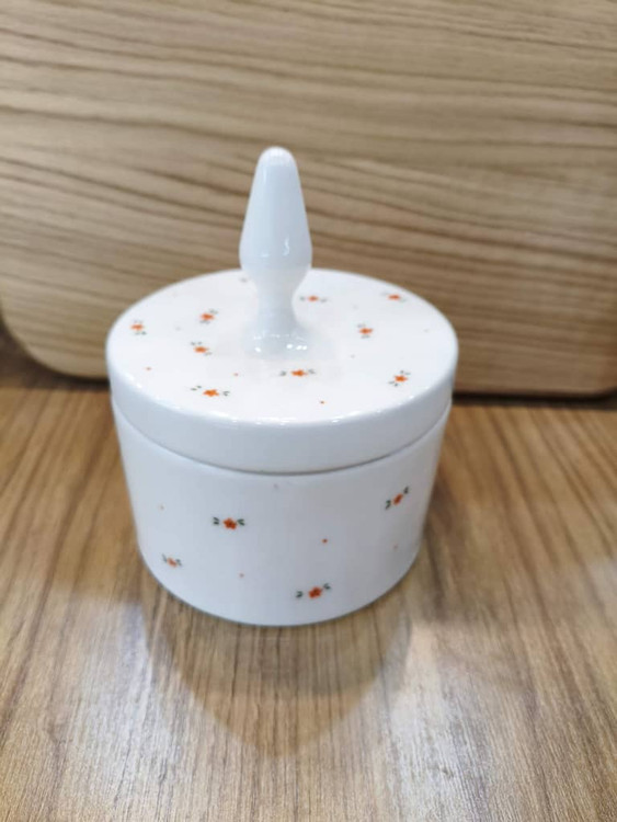 ابعاد: قطر ۱۴ سانت ، ارتفاع بدنه ۸ سانت ، ارتفاع با درب ۱۷ سانت