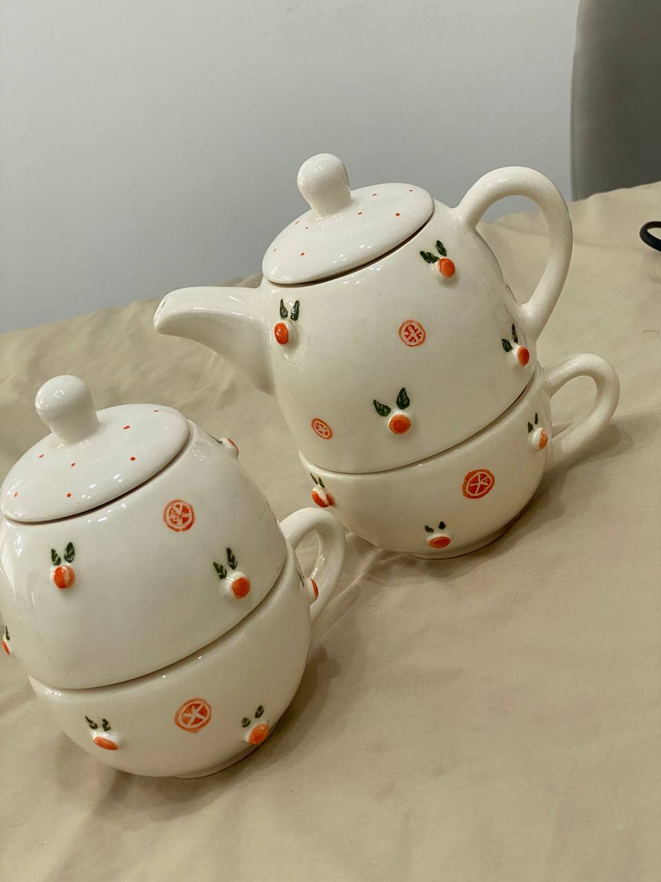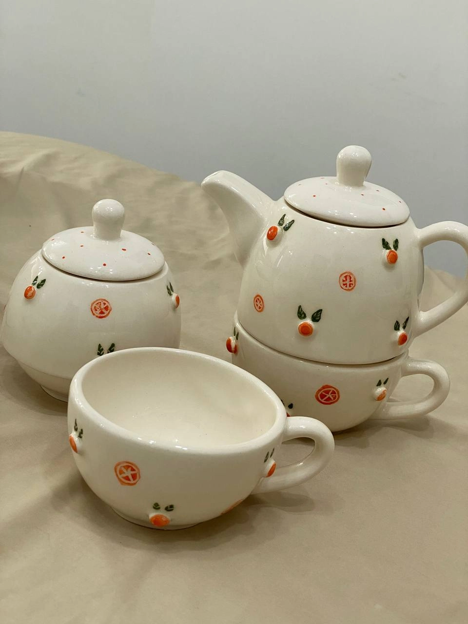 شامل : دو عدد فنجان و یک عدد قوری و یک عدد قندان به همراه دو عدد درب سرامیکی
