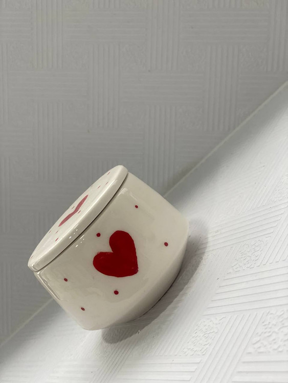 اندازه: قطر دهانه ۸ سانتی متر ، ارتفاع با درب ۶ سانتی متر