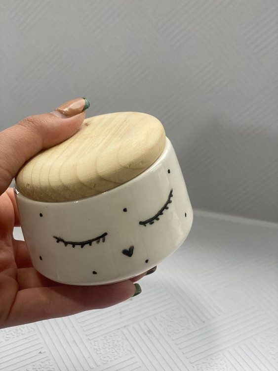 اندازه: قطر دهانه ۸ سانتی متر ، ارتفاع با درب ۶ سانتی متر